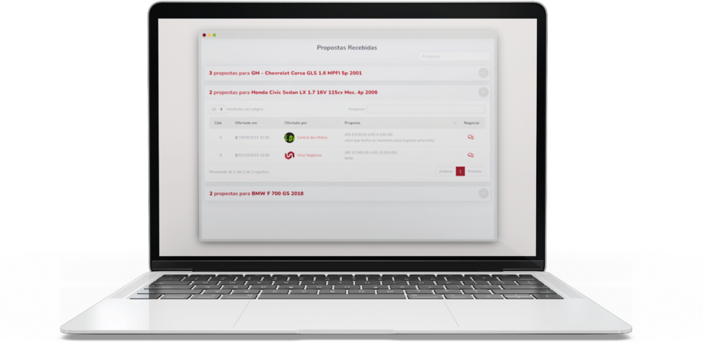 Carros, motos e pesados com CNPJs ativos, intermediando de forma estruturada e ágil as suas intenções de negócios na compra e venda de veículos!